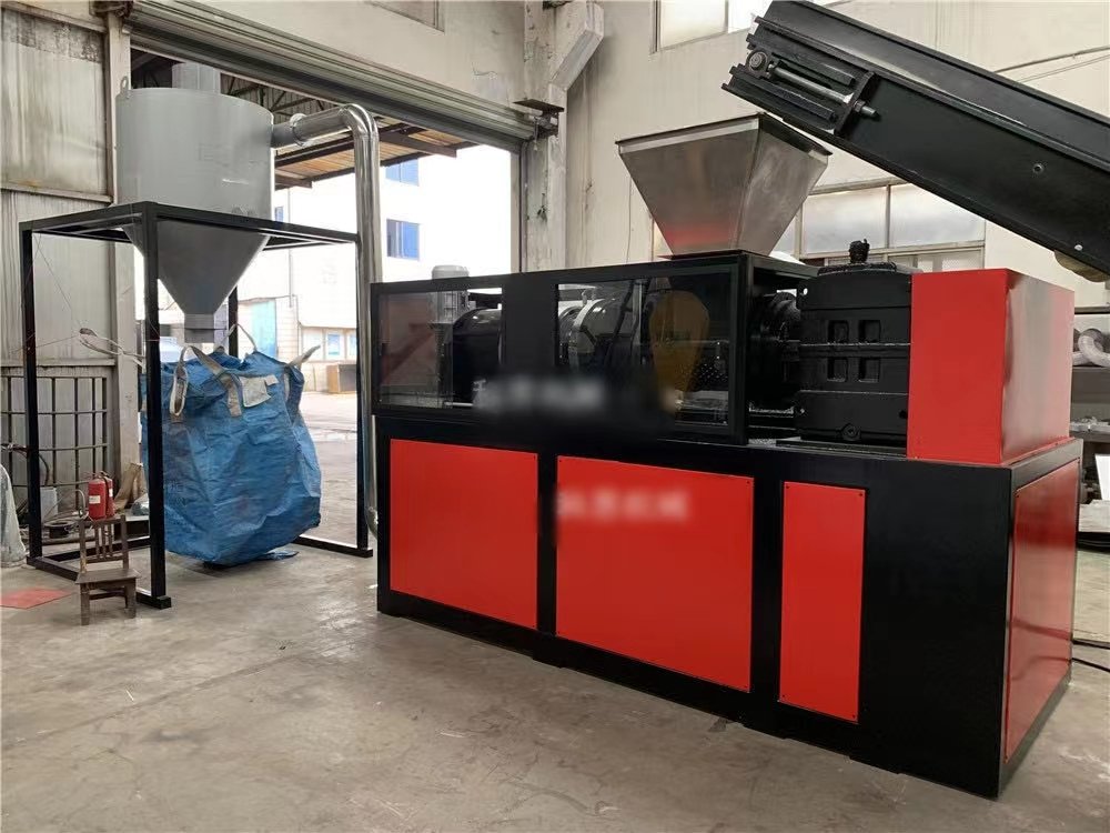 The machine uses a mechanical screw-press principle to process materials like PE/PP films, woven bags, or flakes after they have been washed.
